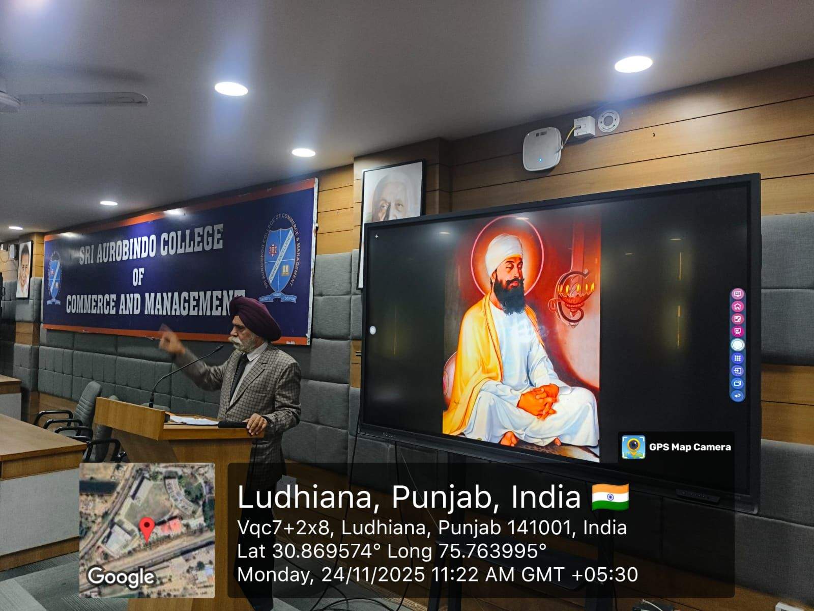 With Reference to the mail dated 3rd November 2025, from College Development Council, Panjab University, Chandigarh, a lecture on the life and martyrdom of Shri Guru Teg Bahadur Ji, was organized on 24th November 2025 under the aegis of NSS Unit of Sri Aurobindo College of Commerce and Management. The resource person for the session was Dr Sukhdev Singh. He began by tracing Guru Tegh Bahadur Ji’s early life, highlighting his upbringing in a spiritually enriched environment and his profound inclination toward meditation, sacrifice, and humility. He emphasized Guru Ji’s persistent commitment to protecting human rights and religious liberty, a legacy that continues to inspire generations. The resource person elaborated on the historical context of Guru Ji’s supreme sacrifice. He explained how Guru Tegh Bahadur Ji chose martyrdom to defend the rights of the oppressed. He also shed light on Guru Ji’s philosophical teachings, including the importance of living a truthful life, remaining fearless in adversity, and embracing equality. Students were encouraged to reflect on how these values can be integrated into their daily lives. The Principal Prof. (Dr.) Vishal Kumar appreciated the valuable insights shared by the resource person. Overall the session was deeply enriching, fostering respect, inspiration, and a renewed understanding of Guru Tegh Bahadur Ji’s timeless teachings.