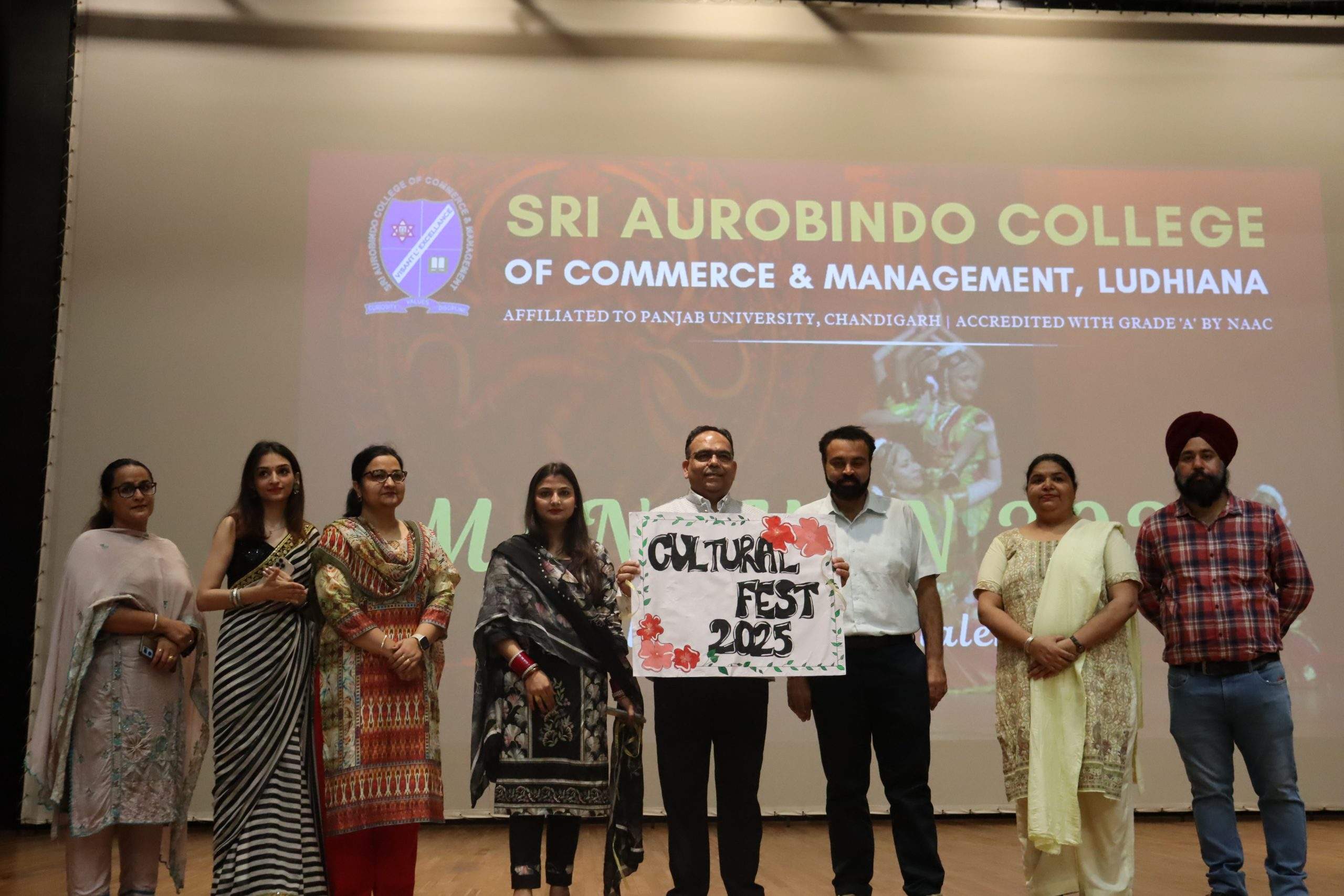 Sri Aurobindo College of Commerce and Management organised its cultural festival, ‘Manthan’, with much magnificence on August 23, 2025. Principal, Prof. Dr. Vishal Kumar along with team of the Cultural Fest declared the festival open by lighting the candelabra and by paying obeisance to the Mother and Sri Aurobindo. Dr. Leenu Anand, Convener, College Cultural Committee, in her welcome address, spoke on the role of such cultural fests in the holistic development of students. She also urged the students not to suffer from stage fright. Dr. Vishal, in his inaugural address, said that these cultural festivals are much more than celebrations, they play a crucial role in the growth and development of students. He said, the SACCM cultural fest ‘Manthan 2025’ would make way for the philosophy of integral education of Maharishi Arvind in whose name the college is built. A soulful guest performance was made by one of the students of ‘Ek Prayas’, a school for special children. The performance was cheered by one and all. All the students were in a mood and mode of merriment. Students were blithe for they thoroughly enjoyed the cultural carnival. The myriad number of events that took place in the fest was: