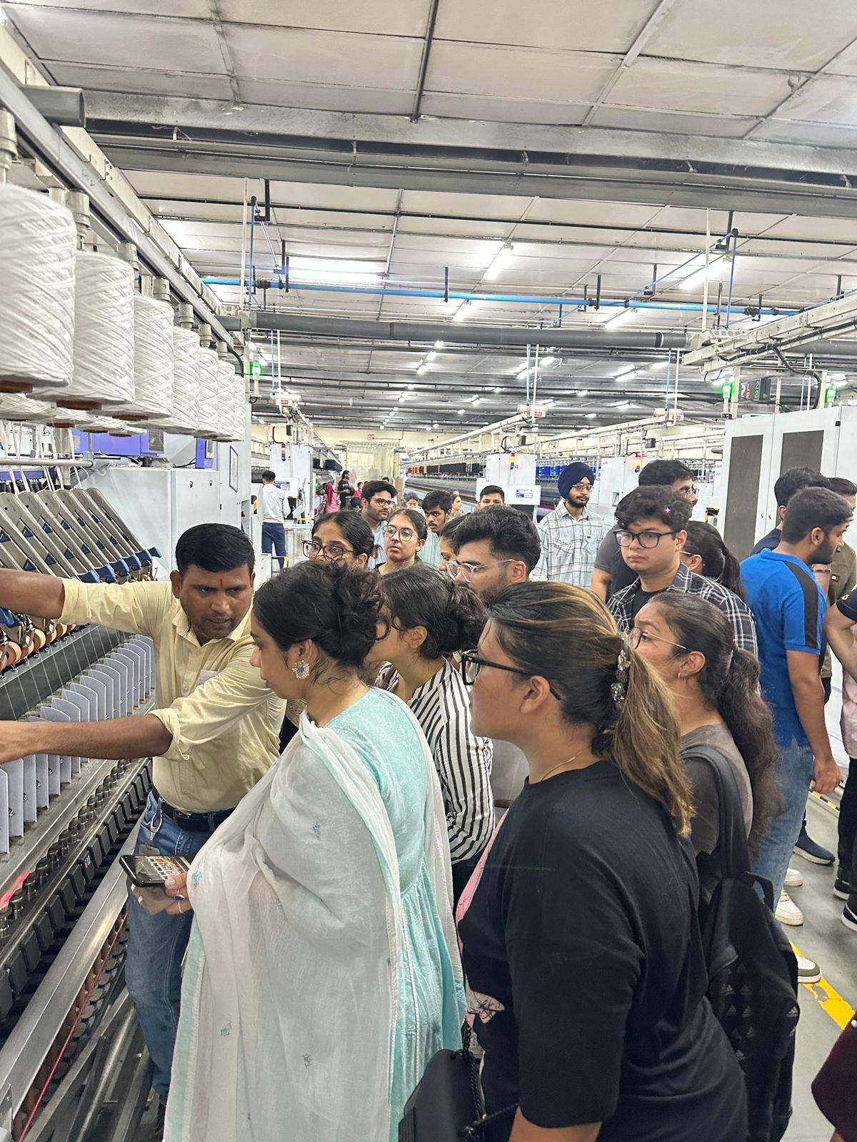 Vardhman Textiles Ltd. is one of India’s leading textile manufacturing companies, established in 1965. Headquartered in Ludhiana, it operates across multiple verticals including yarn, fabric, acrylic fibre, and garments. The visit was led by Mr. Arvind, who provided detailed insights into the company’s integrated operations and eco-friendly practices, particularly in the production of acrylic thread using modern machinery while ensuring industrial safety. The firm places strong emphasis on meeting global quality standards, supported by its robust export network spanning over 75 countries.