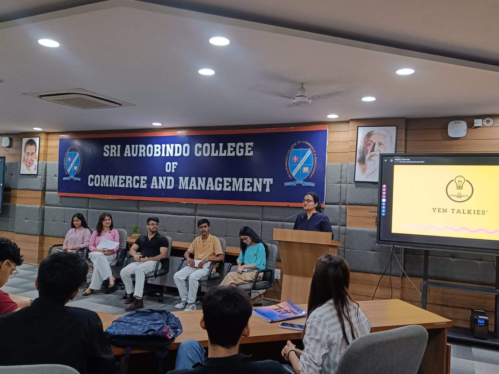 Young Entrepreneurship Network (YEN) of Sri Aurobindo College of Commerce and Management organized a session on the topic “Nurturing Entrepreneurial Mindset” on 01-08-2025 for the students of B. Com 5th Semester and BBA 5th Semester. Mr. Abhishek Taneja (Founder and Owner- Haus of Abhi) was the resource person. Conducted in an interactive podcast format, the session featured a dynamic exchange between four selected student anchors and the invited resource person. The four student interviewers posed thoughtful and well-structured questions covering various aspects of entrepreneurship including the speaker’s journey, inspiration, initial challenges, turning points, and key learnings. The resource person candidly shared his personal story, revealing that his entrepreneurial pursuit took shape during one of the most uncertain periods of COVID-19 pandemic. Having just graduated, he found himself at a crossroads, facing anxiety and confusion about the future. Despite the odds, his strong inner drive to “do something of his own” kept him motivated. He emphasized how destiny and determination intertwined in his life, unexpectedly leading him into the domain of fashion designing, a field that eventually became his passion and profession. The session provided a comprehensive and insightful roadmap for budding entrepreneurs looking to establish and elevate themselves as future entrepreneurs in the competitive business landscape. He emphasized success is not merely a product of ambition, but a fine blend of preparation, patience, perseverance, and purpose along with a bit of destiny. The conversation further explored how he built his brand, overcame self-doubt, and continued to adapt to an ever-changing market environment. Prof. (Dr.) Vishal Kumar appreciated the speaker and stated that such honest dialogue will encourage the young minds to embrace uncertainty with courage, trust the process, and remain open to evolving paths. The event was coordinated by Dr. Leenu Anand. Ms. Esha Jain, Ms. Mehak Arora and Dr. Pushpinder Singh assisted her in organizing and managing the event.